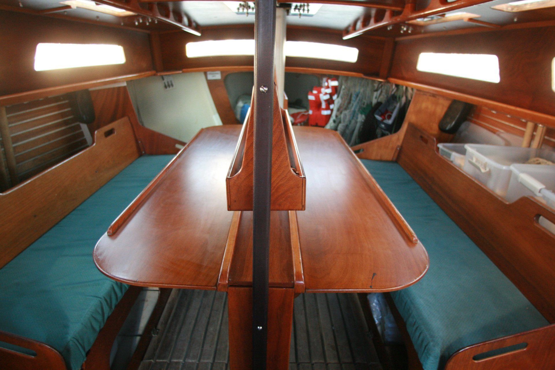 Bay Wolf has a brand-new mast, custom-built by Buzz Ballenger with swept back spreaders that incorporates everything learned about the Santa Cruz 50s during the past 30 years. She has recently been outfitted with a custom-built hard dodger, Furuno radar, charting GPS and anchor windlass.