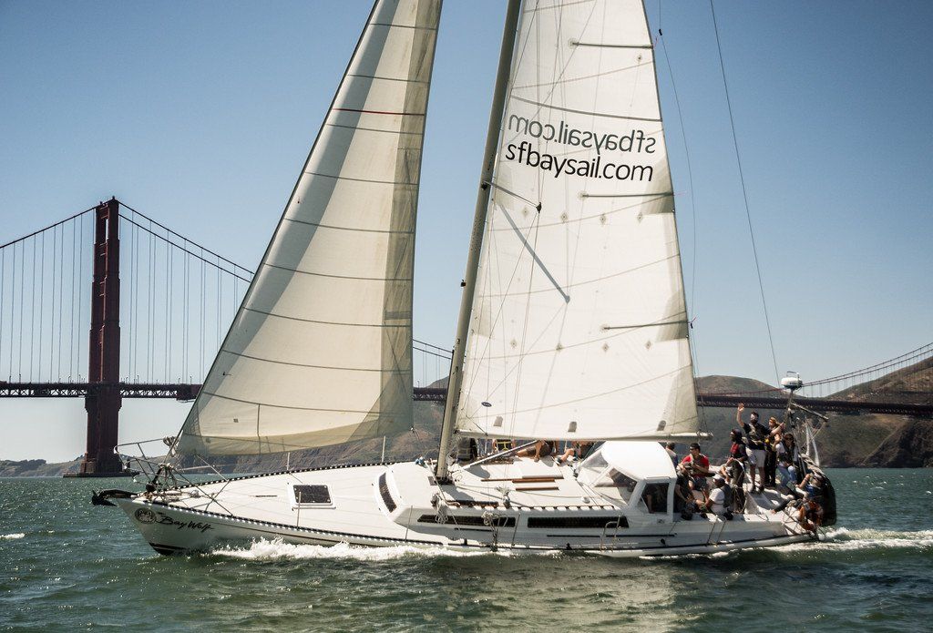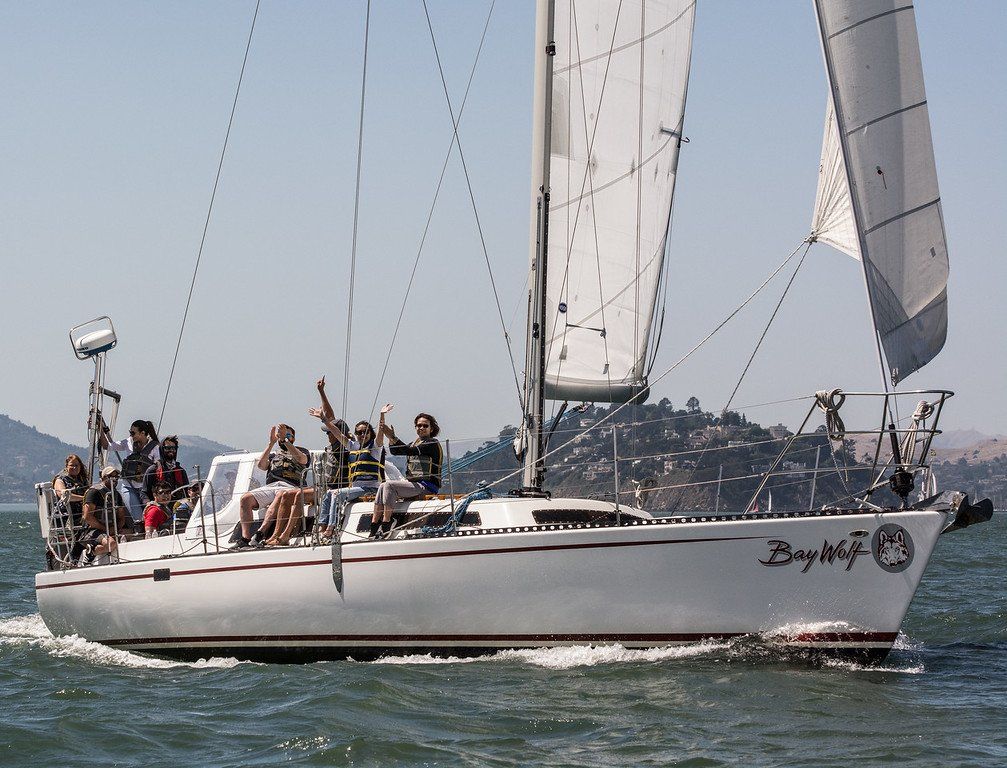 Bay Wolf is legally U.S. Coast Guard certified for up to 24 passengers but right now we’re taking up to 20 passengers on weekdays, and 16 passengers on weekends. She is one of the few sailboats available in the bay for over 6 passengers.